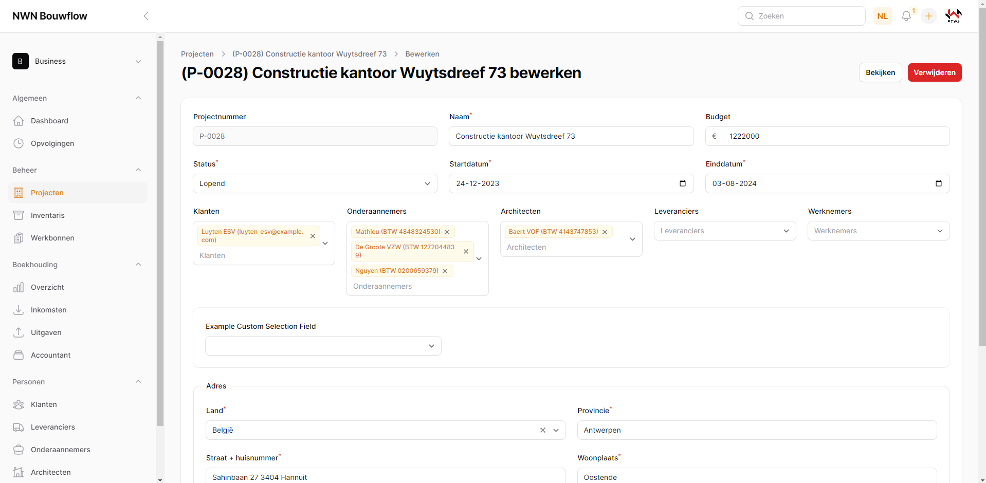 Indien je op een blok klikt, wordt je gebracht naar de pagina om het betreffende project te bewerken.