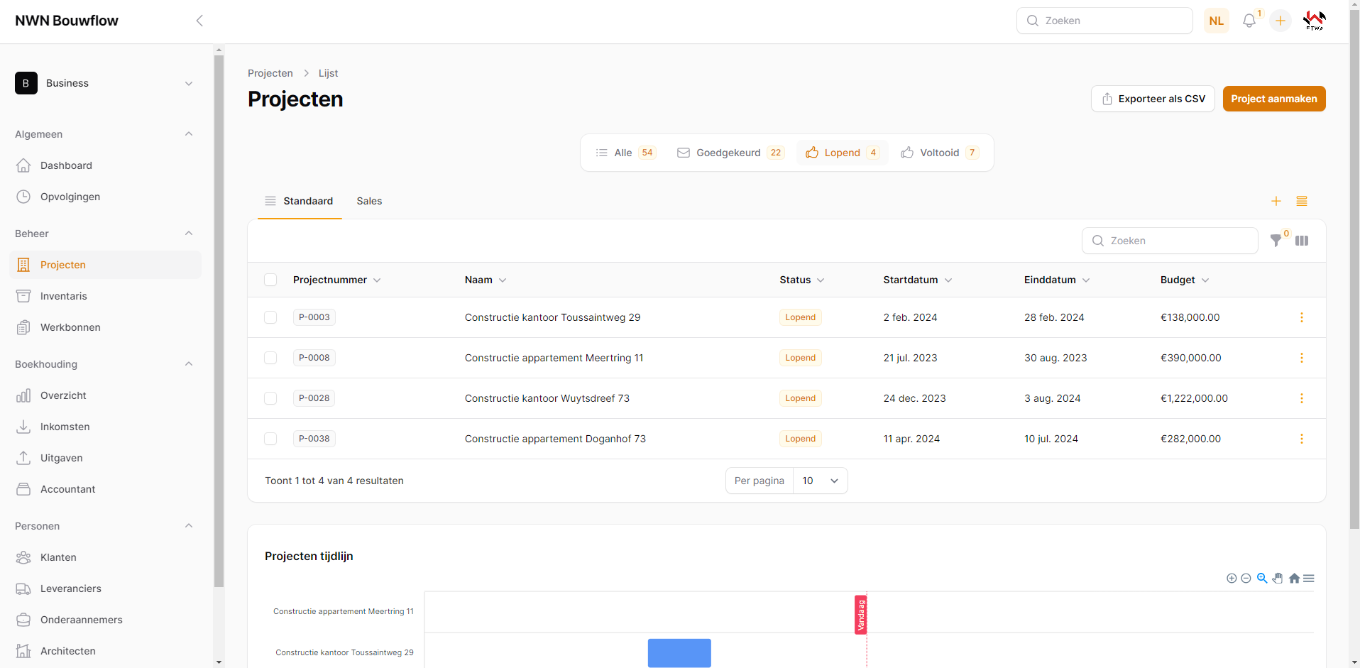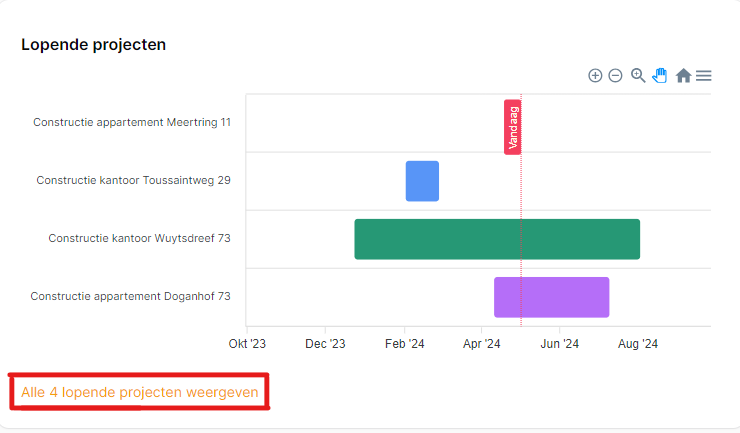 Door te klikken op “Alle 4 lopende projecten weergeven”, wordt je naar het projectoverzicht gebracht.