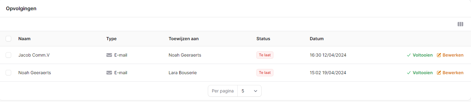 Hier worden alle opvolgingen weergegeven. Van hieruit kan je: