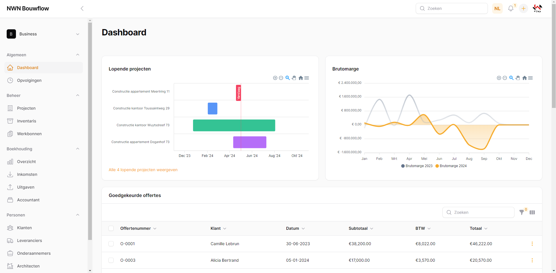 De goedgekeurde offertes